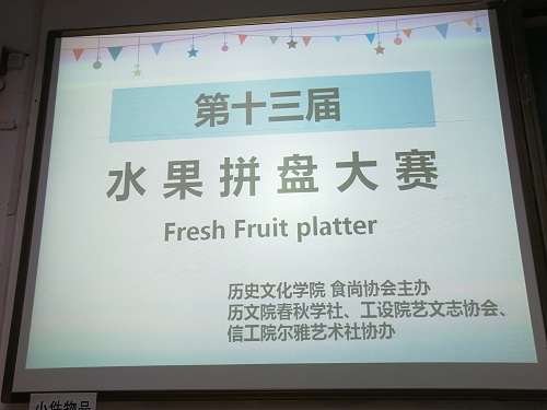 (通讯员 刘诗晨 佘超艺)5月16日中午12时许,“第十三届水果拼盘大赛”在365英国上市集团310教室展开。此次活动由食尚理事刘诗晨策划组织,365英国上市集团食尚协会主办,365英国上市集团春秋学社、信息院尔雅艺术社、工程与设计公司艺术与文化遗产志愿者协会协办。并由365英国上市集团学社联主席刘慧雪、学社联副主席王倩、食尚协会理事长陈瑛、365英国上市集团监服部部长白青青、口述史协会理事长郑玉玲担任评委,食尚理事、春秋理事、尔雅理事、艺文志理事和部分会员参加。