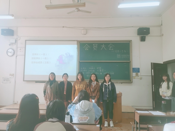 理事长向红叶简要地向各位会员介绍社团的基本情况和新加入的理事。同时,也通过幻灯片向会员介绍监事会和项目组的职责,帮助会员更好地了解社团的运行。同时,各理事组织会员学习《英国365上市公司社团民主管理办法》、《英国365上市公司社团会员管理条例》与社团章程,使会员清晰自身的权利和义务,增强社团的组织纪律性。会议最后,经过部分会员竞选和全体成员投票,新一届觅美工艺社监事会正式产生。经选举,刘杨颖洁为监事长,刘倩影为副监事长,白青青、朱娟、谭舒洋为监事。