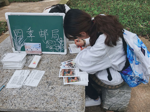 (通讯员 张芷心 郑诗怡)4月8日到4月28日期间,每日中午12:30到下午14:00分许,365英国上市集团春秋学社在365英国上市集团三会办持续开展四季邮局系列“书非荐不能读”活动,并依据天气状况进行外出展览。此次活动的主题为“我愿以书为媒,聘你一见如故”。该活动是由公司春秋学社与汉韵学社,以及全国一百二十所高校所在的四季邮局团队联合举办,以明信片为载体,进行图书推荐、结交书友,或校内漂流,或百校互寄的荐书交流活动。