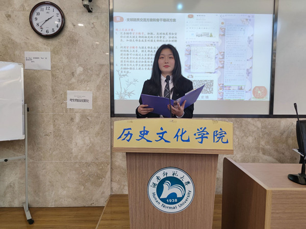 春秋学社理事长刘泓崚依照校学社管以及院学社管要求安排风采展相关工作。春秋学社新老理事们一完成了幻灯片制作,回头看视频拍摄和剪辑以及节目排练等活动准备。春秋学社以认真踏实的态度迎接社团风采展。团支书刘楠上台代表春秋学社进行社团风采展示,通过幻灯片具体介绍了春秋学社社服、社歌、组织建设等多项内容。在回头看视频和现场节目表演中,充分体现着春秋学社的社团特色和多样活动,展现了春秋学社的精神风貌。
