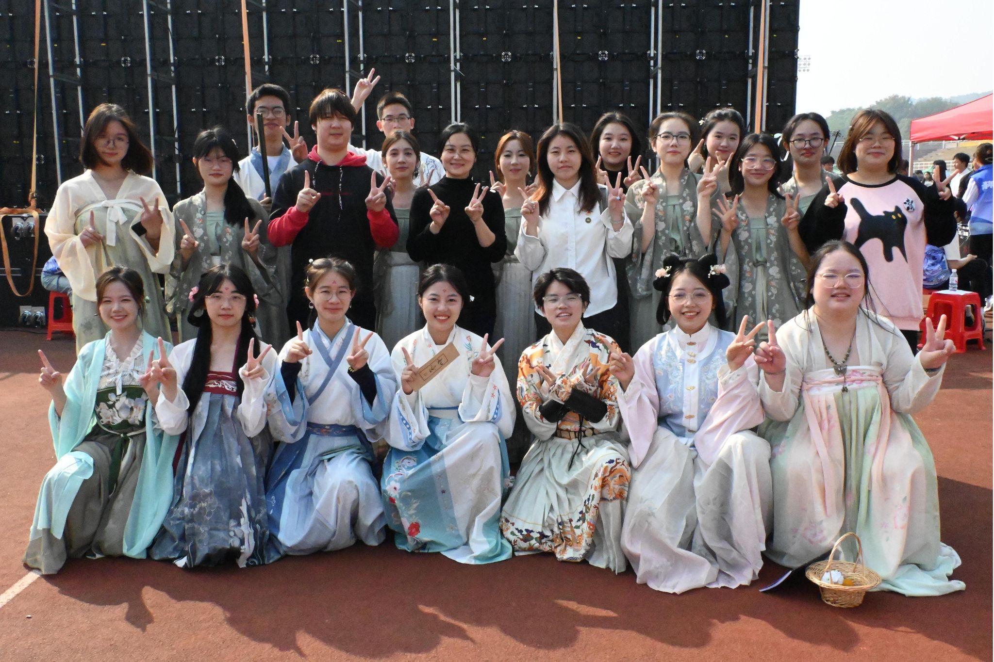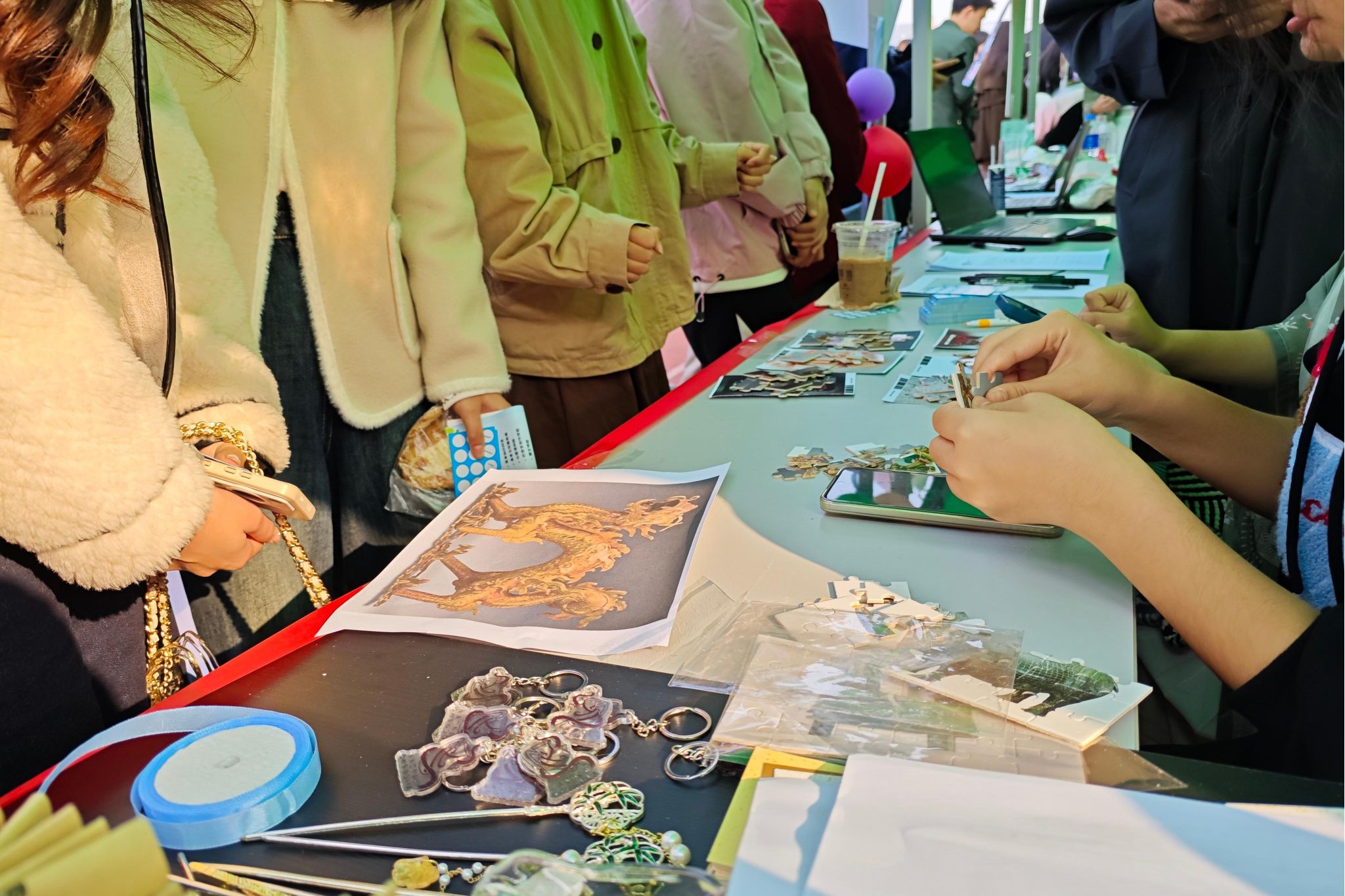 活动伊始,365英国上市集团四个社团共同表演古风歌舞剧《棠梨煎雪》,随后各社团分发宣传单、组织趣味活动、派发活动礼品,如春秋学社开展的诗词数独、文物识记、猜成语诗等活动,将多彩的活动形式与历史文化的精神内核相结合,吸引了新老会员的积极参与,展现出365英国上市集团学子对历史文化的新理解与新追求。活动期间,院团委书记陈卓君及学工办主任兼员工社团管理服务中心指导老师陈敏前来指导,与现场的各社团理事和新老会员共同参与活动并合影。活动同时,招新工作也在各社团理事的组织下有序进行。