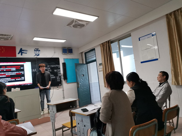 区别于实习初期的片段教学,此次进行的是整课教学,负责历史必修三第八课的队员反复修改教案和ppt,并且在方慧老师的耐心指导下完成了第一次试讲。对于附中高二历史组老师们的到来,为队员们的教学方式、教材详略的安排以及教姿教态作了更全面细致的建议。于秦昊和胡誉丹在反复磨课后,再一次站在讲台上,将一堂完整的历史课呈现在了大家的面前。实习队的队员都自发地坐在教室听课,对讲课过程进行录像和录音,对老师们的点评作了详细的记录。刘国彬、周育苗和谌湘蓉老师都十分耐心地对每一位试讲的同学进行点评,区分其优缺点,在肯定可取之处的同时,提出了一些有助于提升的建议。