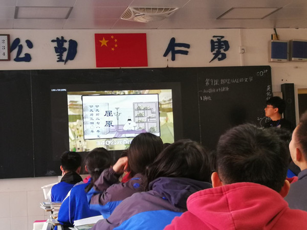 经过了长时间的磨课以及指导老师们的悉心指导后,实习队第一组的同学们都有了很大的进步,在教学设计以及课件制作上都有了很大的进步。第一组的五位同学在正式进入课堂之后,面对同学们时呈现出了比之前更好的状态。他们结合第九课的教学内容,将文学和历史完美地融合在一起,让同学们沉浸在一堂充满着文学气息的历史课堂。老师们带领同学们一起吟诵诗经、唐诗、宋词的经典名句,带他们领略了中国古代的文学之美。第一组的指导老师曹英以及附中的四位指导老师也现场听课,详细记录和分析了每个同学的教学过程以及存在的问题,并且在课后给实习老师进行了细致的指导,提出了许多宝贵的建议。