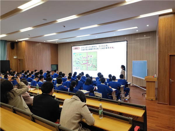 此次公开课授课内容为《沟通中外文明的丝绸之路》。课堂上欧阳美奇以鎏金铜蚕文物为导入,围绕张骞通西域、海陆两丝路、西域的管理三部分展开授课,并重点讲述了丝绸之路开通的意义,最后以“一带一路”新构想为结尾。整堂课思路清晰、内容完整、与员工互动性强,展示了实习队在雅礼麓谷中学两个月来的实习成果。