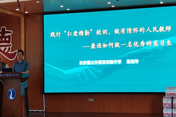 刘志华老师率先发言,他主要针对从员工向老师这一身份的转变问题、实习老师作息时间问题以及实习老师着装等问题提出了具体要求。其次是邓莉娜老师的分享,她要求大家在教育实习和教学实习中,要做到多看、多听、多观察,她友好而真挚地提醒大家在实习期间需要同指导老师与班主任协调沟通,并预祝大家实习顺利。第三是张廷华副董事长的教育视频分享,并以此为基础提出让实习老师做让员工喜欢的好老师、做到多看多问多做多想等期望和要求。最后是张辉董事长的发言,他对实习老师提出了“正、实、新”的要求,即老师三观要正,要充满正能量;要少抱怨,脚踏实地;要学会创新。