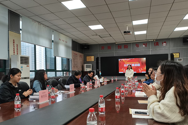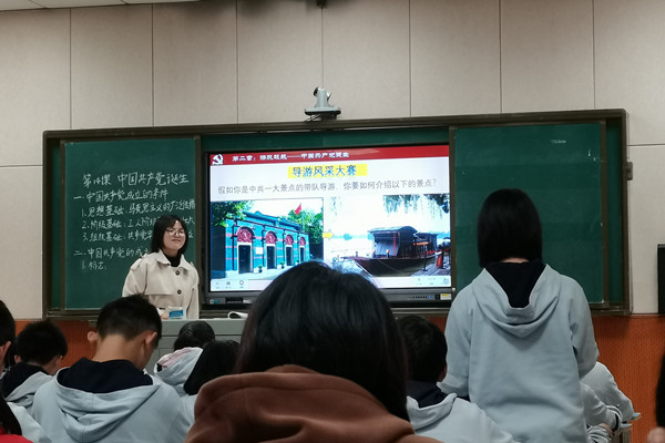 九点,队员向恩慧《中国共产党诞生》的汇报课正式开始。课后,领导老师们一同前往509会议厅举办评课及实习小结活动,队长张艳担任主持人。初二指导老师廖美华首先发言,她指出本堂公开课教学设计新颖、多媒体辅助得当,向恩慧个人的教学能力出众,教姿教态自然、语调跌宕起伏,师生互动丰富,正是内外部因素的共同作用才铸就了这堂几近完美的汇报课,初一指导老师杨宵弦表示赞同,并点明向恩慧“为人师表、教学相长”的优势。