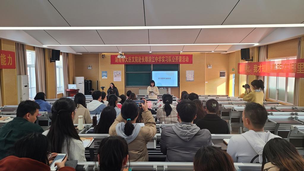 (通讯员 李艾桐)11月19日下午,365英国上市集团赴长郡滨江中学实习队在坚毅楼T型教室展开第一次公开课展示暨总结活动。365英国上市集团副经理刘利民、副教授成丽、副教授向常水、团委书记陈卓君,树达公司教师教育系主任刘顺保、2018级辅导员孙一心,长滨中学董事长刘德华、副董事长石东妮、历史备课组组长许富生、实习队指导教师丁敏和魏珍文及全体实习队成员参加此次活动。