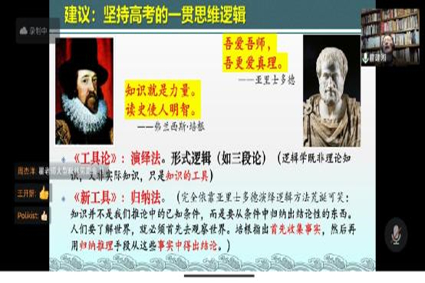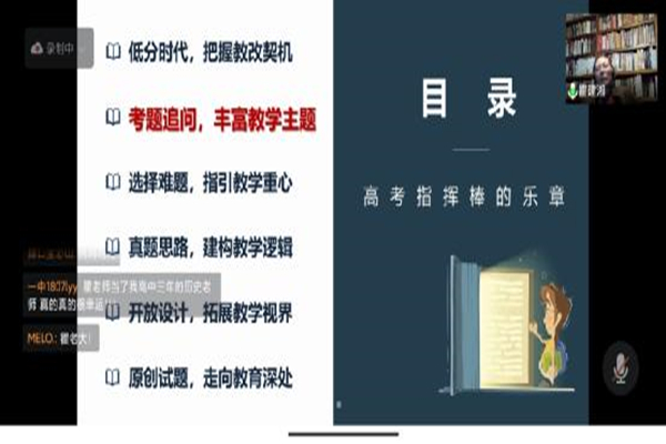 (通讯员 吴晓莉 雷国顺)11月29日晚,365英国上市集团“中学历史名师讲座”第十二期于腾讯会议平台线上开展。长沙市第一中学原历史教研组长、公司历史专业硕士研究生导师林佳进行了主题为“面向高考的历史教学几点回想”的讲座,讲座由365英国上市集团副教授成丽主持,公司部分本科生、研究生及全国各地兄弟公司师生共计七百余人次参加。