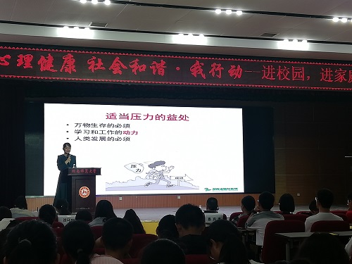 讲座伊始,刘学军通过提出“压力是什么”的问题引导各院代表初步了解压力的来源,压力的适度性原则和缓解压力的方法。同时,她还列举了与心理压力相关的心理学理论,以此来说明如何更好的管理心理压力。