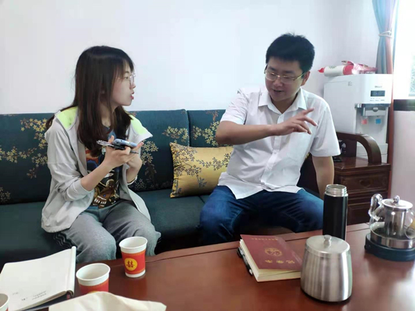 在暑期实践队表明来意后,廖翔昊首先对黄市镇现发展情况和未来规划进行介绍,同时针对实践队有关“新农村建设”主题方面的问题,从基础设施建设、精神文明建设、生态文明建设三个方面回答。廖翔昊从黄市镇已经开展的高标准农田建设和黄市社区村委会建设出发,向实践队介绍了相关新农村建设成果,并对实践队的暑期调研工作表示支持。