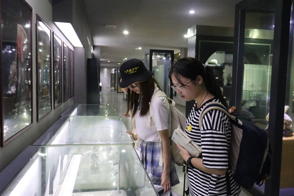 随后,在贺康的带领下,实践队员参观了景区内上堡晶矿博物馆及古法造纸工坊。参观途中,对贺康涉及景区设计理念、经营现状的介绍,队员们都及时记录。在古法造纸坊,队员们围观了传承人现场展示抄纸工序,部分队员代入游客身份进行亲身体验。