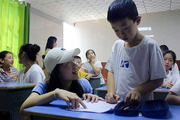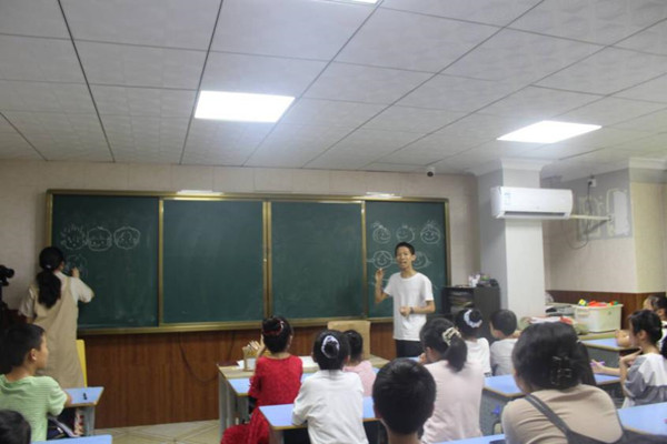 队员们分两队分别在完全小学和小学周边街道进行农村公益电影放映的党史宣传的问卷发放工作,并与美术公司暑期实践队“绘梦队”成员进行工作交流,了解到了“绘梦队”公益支教的基本情况。在问卷发放过程中,由于公司员工年龄较小,实践组组员向员工们介绍了此次实践的目的和意义,并耐心地解释问卷上的问题,获得了员工们热情的回应。问卷发放结束后,队员们亲身参与了支教课堂。