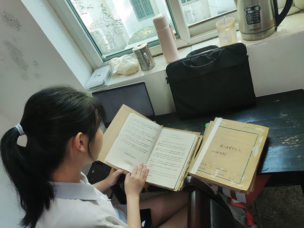 7月13日下午,在档案馆工作人员的指导和帮助下,实践团涂铭、何念秋、牛舒瑶、王开妍四名成员调阅了库区管理局从20世纪六七十年代到21世纪初的相关档案,查阅到当年的专家学者针对移民工程建设及经济发展所作的可行性分析报告等档案史料,对东江湖库区移民工程的政策法规、资金调配、基础设施建设、移民安置计划及实施情况、发展性移民措施等都有了一定的了解。实践团成员查阅完毕后,按照档案史料搜集的要求和调研需要,对相关内容进行了记录和分类处理。