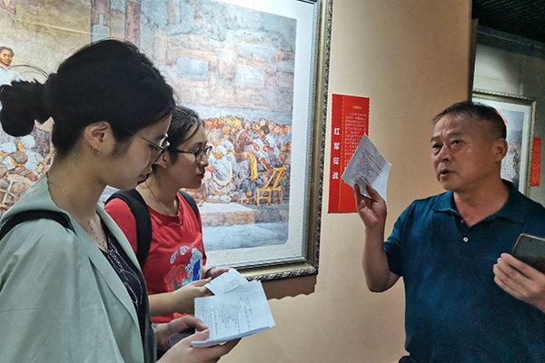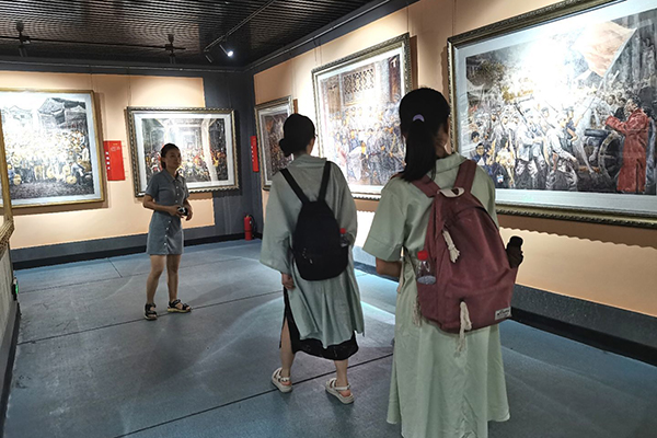 采访开始前,讲解员带领实践团成员参观了湖南红色美术纪念馆,重温红色岁月,感受湘南革命的艰难历程和重大贡献。讲解员向实践团成员介绍了的湖南红色美术纪念馆的创建历程,重点讲解了馆内与资兴红色革命有关的画作,丰富了成员们对资兴红色革命的认识。从纪念馆的画作中,实践队成员们了解到资兴独立团和资兴县苏维埃政府背后的红色故事。