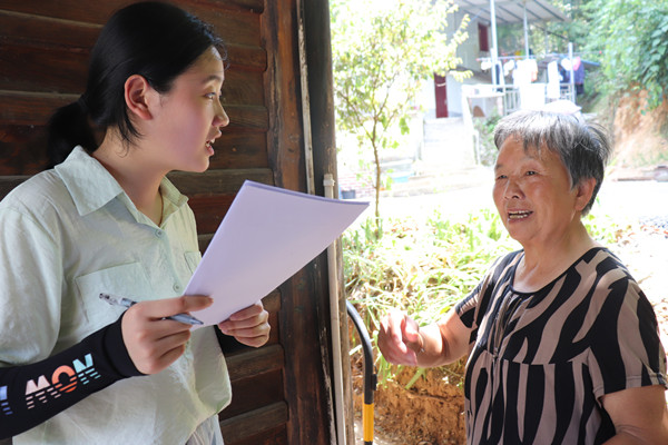 图为村民奶奶向实践队员介绍自己的家庭环境