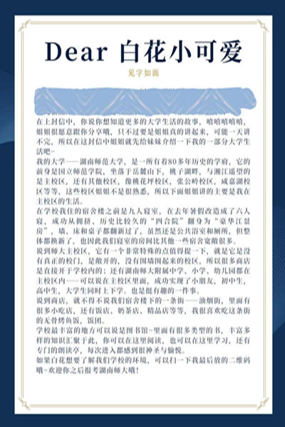 此次招募的志愿者将在三轮培训后与乡村留守儿童一一配对并开始通信。活动过程中,志愿者需手写信件,并将其上传至公众号“蓝信封邮筒”,通过线上平台与儿童进行书信来往。在信件中,留守儿童分享学习生活中的焦虑、对成长的好奇和担忧又或是自己的兴趣爱好,志愿者则为他们解决烦恼,回应他们的情绪和想法,帮助他们树立良好的心态或分享老员工活的所见所感,以手写信的方式给予陪伴,引领他们成长。