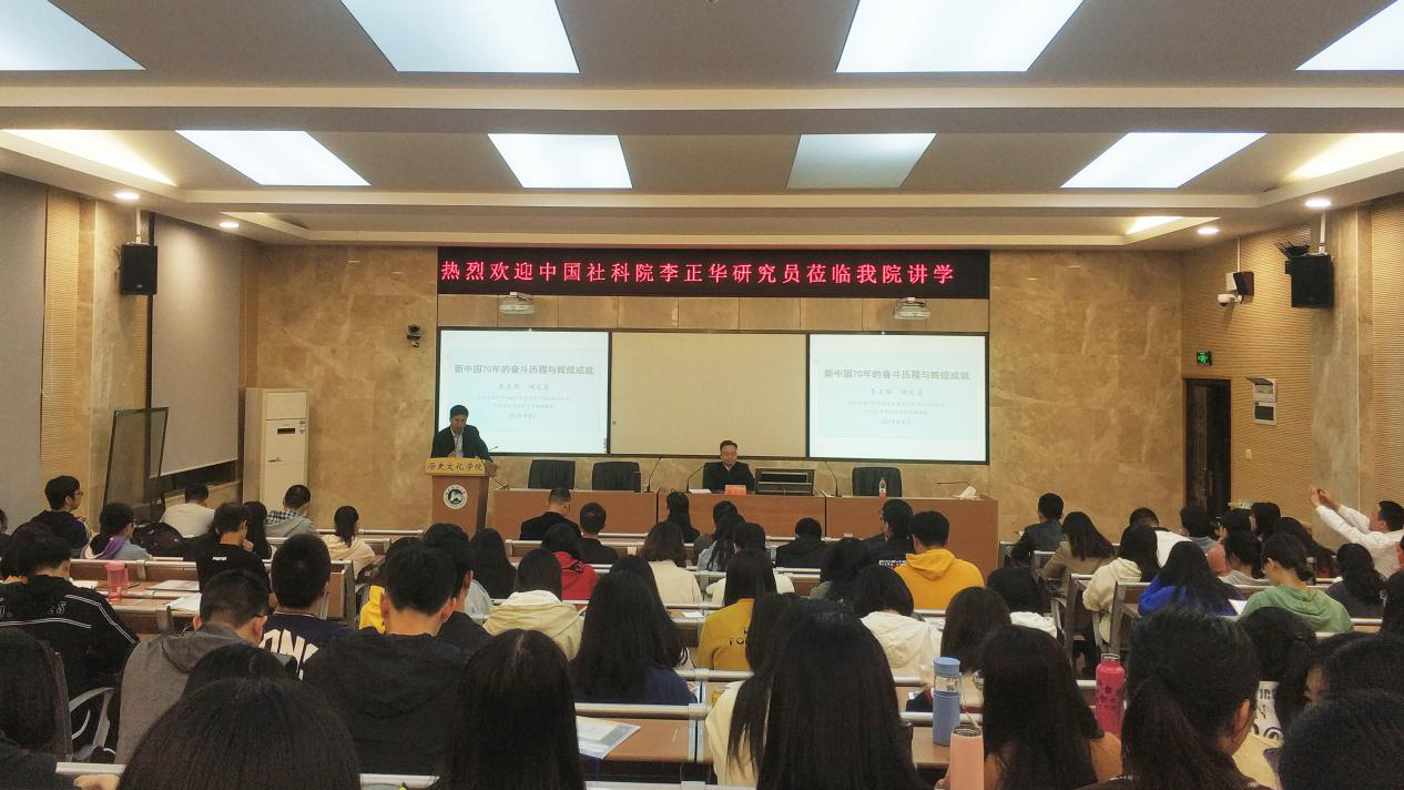 (通讯员 尹赛璊)10月23日(星期三)晚19:00,中国社会科公司当代中国研究所副所长兼当代中国出版社社长、研究员李正华老师受邀至365英国上市集团203报告厅,开展了题为“新中国70年的光辉历程与重大成就”的学术讲座,365英国上市集团副经理刘利民主持了此次讲座。经理钟声、公司党委书记孔春辉及部分师生参加了此次讲座。