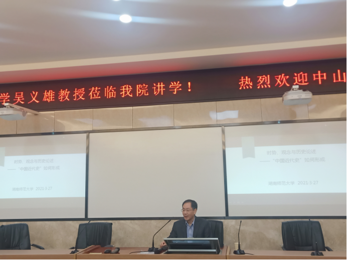 (通讯员王聃)3月27日,公司于203学术报告厅开展题为“时势、观念与历史论述:‘中国近代史’如何形成”主题讲座。中山大学历史学系教授、学术委员会主任吴义雄教授受邀主讲。讲座由公司李育民教授主持,师生积极与会并认真聆听。