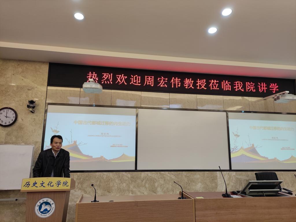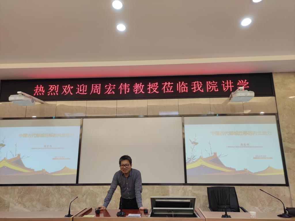 (通讯员王聃)4月19日,历史文化院于203学术报告厅开展题为“中国古代都城迁移的内生动力”主题讲座。陕西师范大学二级教授、博士生导师、《中国历史地理论丛》主编周宏伟教授应邀主讲。讲座由公司经理钟声教授主持。