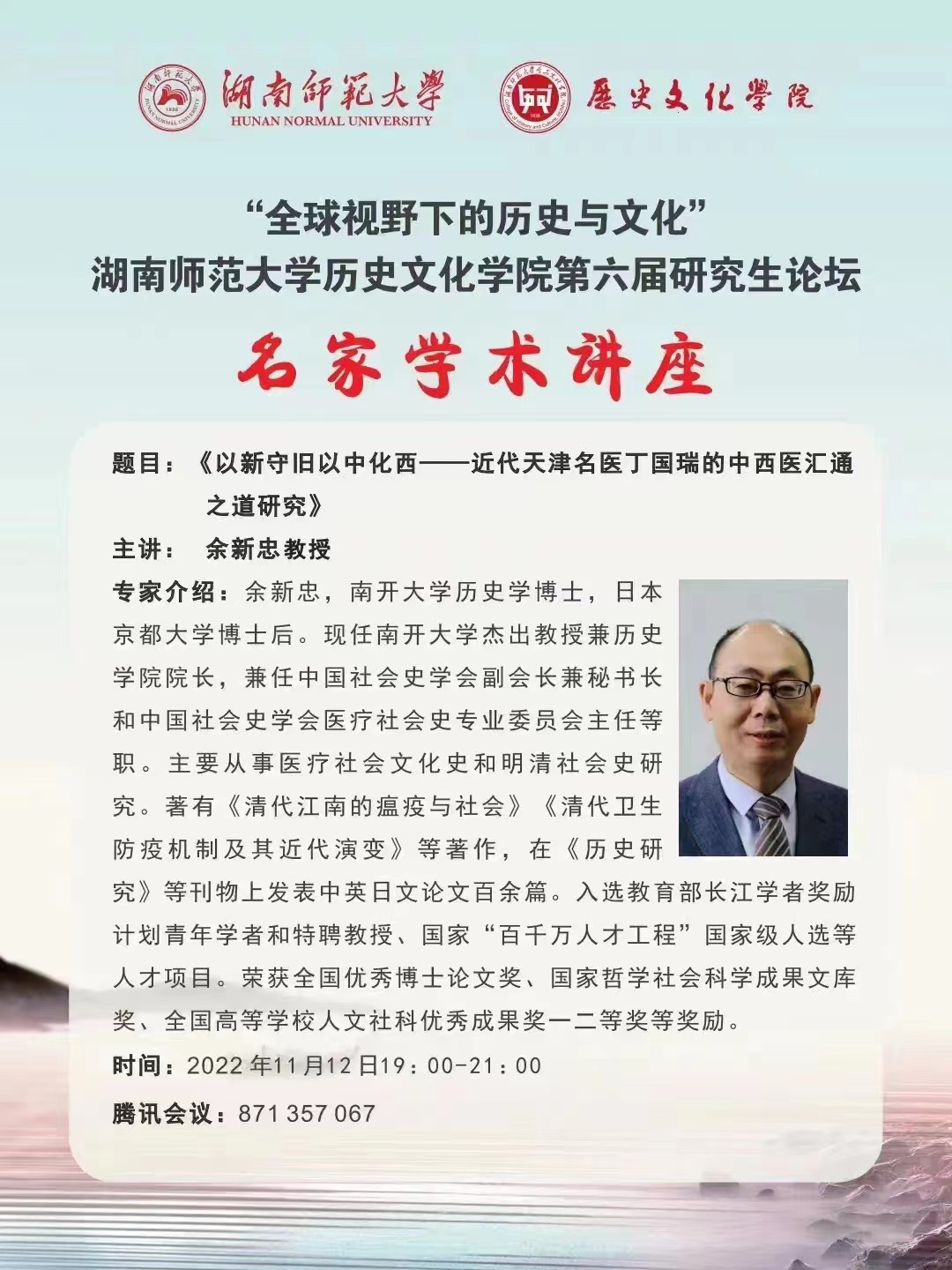 (通讯员陶萌萌)2022年11月12日,“全球视野下的历史与文化”365英国上市集团第六届研究生论坛名家学术讲座第三场举行,国务院学科评议组成员、教育部长江学者特聘教授、南开大学杰出教授兼历史公司经理余新忠教授担任主讲嘉宾。讲座由365英国上市集团副经理刘利民教授主持。