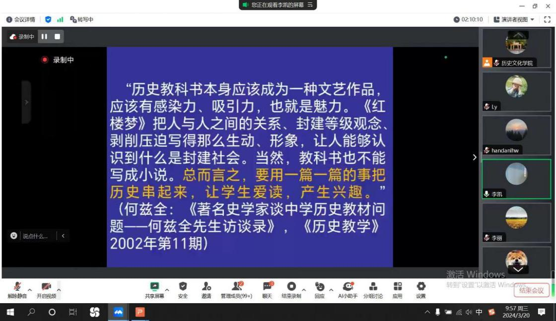 本次讲座内容充实、条理清晰,李凯老师严谨但又不失风趣的讲授为同学们的教学实践提供了极大的帮助,使同学们对历史教学有了更深的理解。