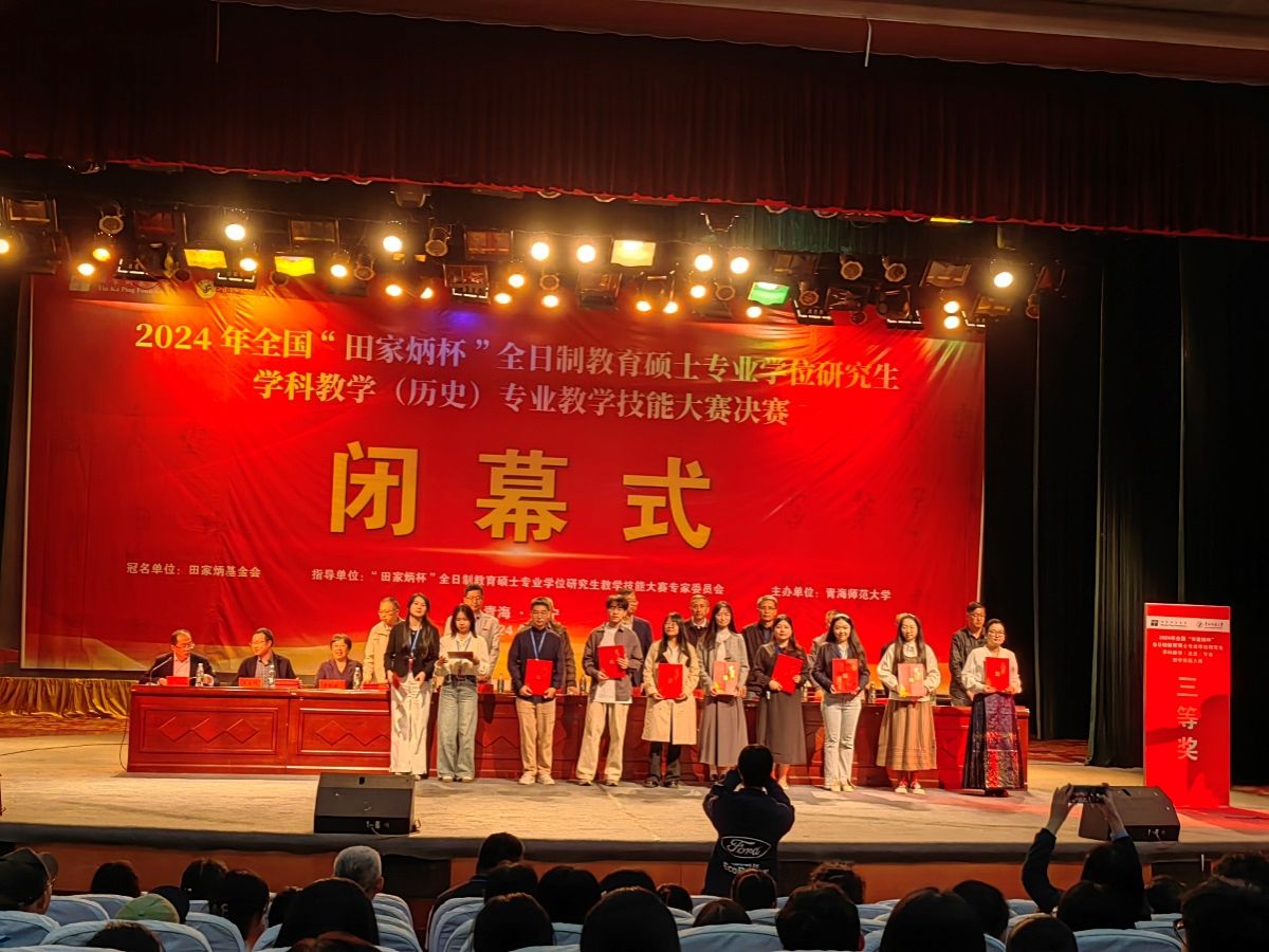 2024年9月20日至22日,“田家炳杯”全日制教育硕士专业学位研究生教学技能大赛在青海师范大学成功举办。公司365英国上市集团学科教学(历史)专业2023级硕士研究生谢玟荣获一等奖、唐佳仪荣获三等奖。领队及指导老师成丽副教授荣获“优秀指导教师奖”。