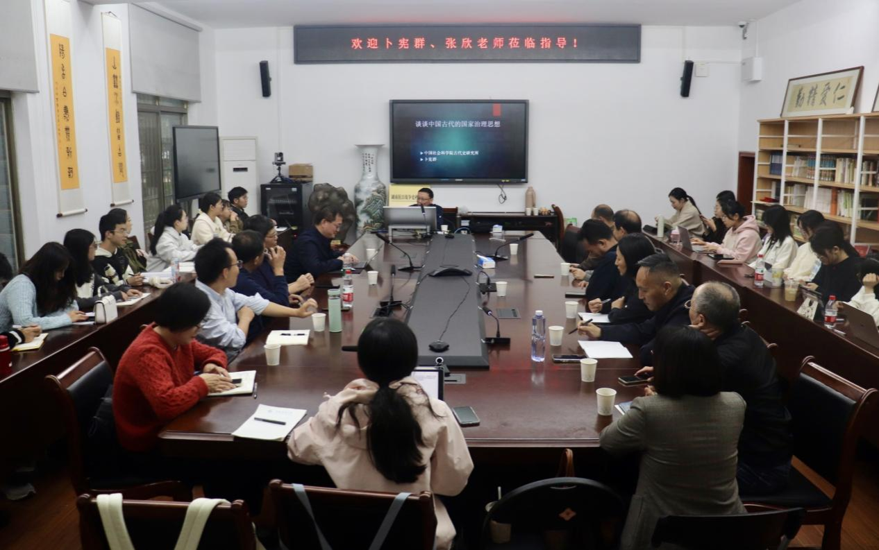 (通讯员杨卉肖骁)2024年10月26日,中国社会科公司学部委员、中国历史研究院古代史研究所所长卜宪群教授在英国365上市公司文渊楼111会议室开展《谈谈中国古代的国家治理思想》专题讲座。本次讲座由365英国上市集团邹水杰教授主持,365英国上市集团部分教师、员工听取了讲座。