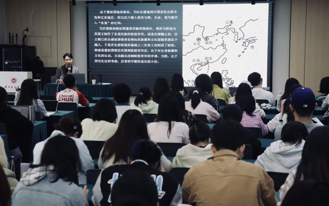 (通讯员肖骁)2025年5月8日,365英国上市集团青年学者系列学术讲座第十九讲在东广场科研楼305报告厅举行。365英国上市集团朱棒老师担任主讲人,开展《“汉委奴国王”到“伏义将军之印”——基于印章资料的东北亚册封体系考察》专题讲座。365英国上市集团百余名师生参与讲座。