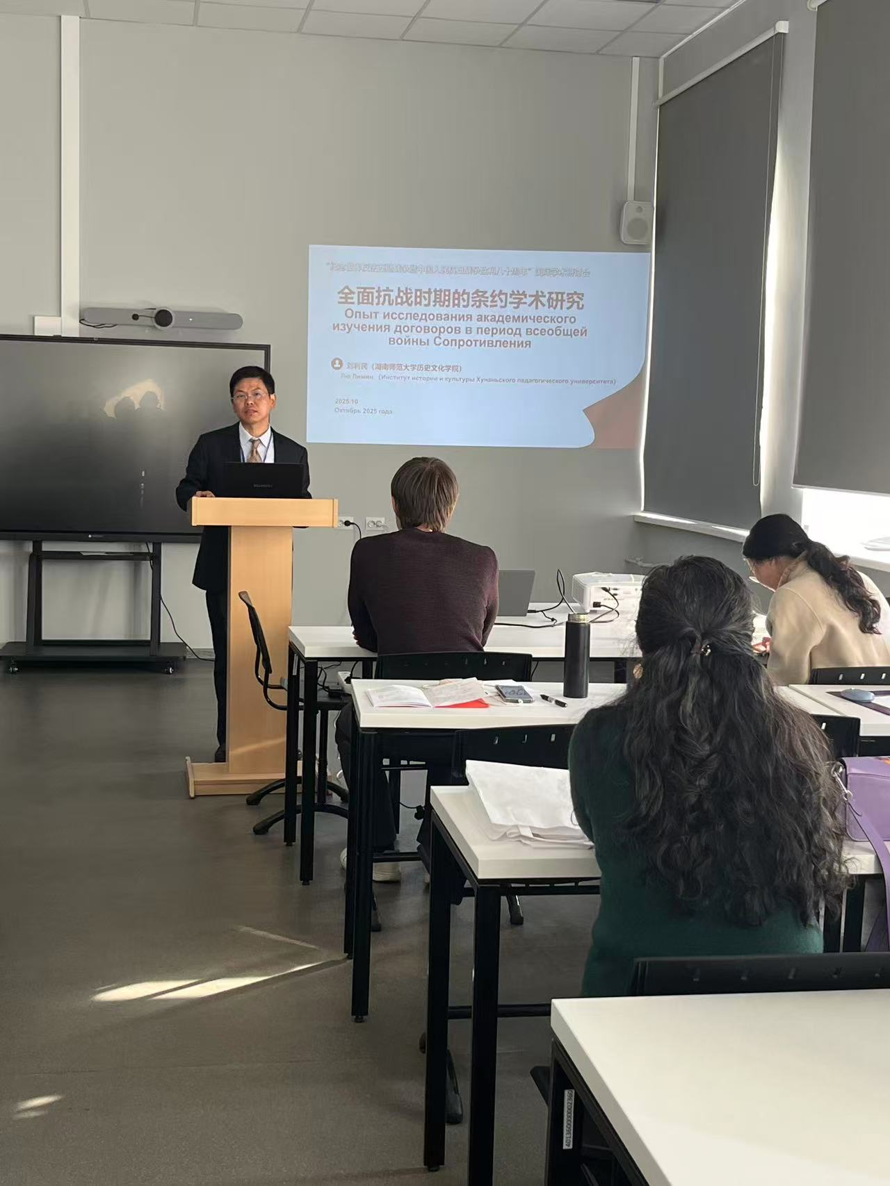 公司刘利民经理、傅新球副经理、郭辉副经理应邀参加这次学术会议与交流,并于10月3日,在雅罗斯拉夫尔国立师范大学举行的分组会议上,分别做《全面抗战时期条约理论研究》《第二次世界大战与英国妇女解放》《抗战时期古代将领的民族英雄记忆建构与及其内涵》的学术报告。