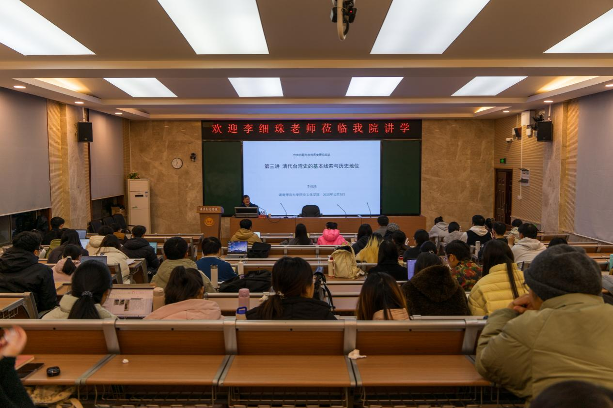 (通讯员 李嘉鼎 马林林)2025年12月5日,台湾问题与台湾历史研究系列讲座第三讲在文渊楼203教室如期开讲。中国社会科公司近代史研究所二级研究员、中国社会科公司大学历史公司李细珠教授,以《清代台湾史的基本线索与历史地位》为题展开深度分享,2023级、2024级与2025级研究生到场聆听并参与学术研讨。