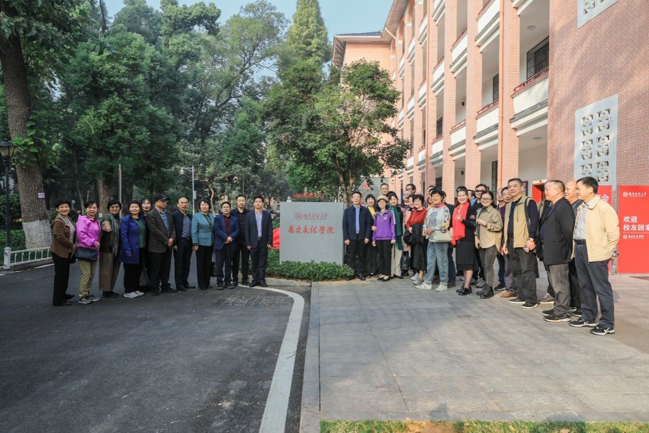 座谈会前,公司经理刘利民和员工代表共同为1980级员工捐赠的院标揭幕。