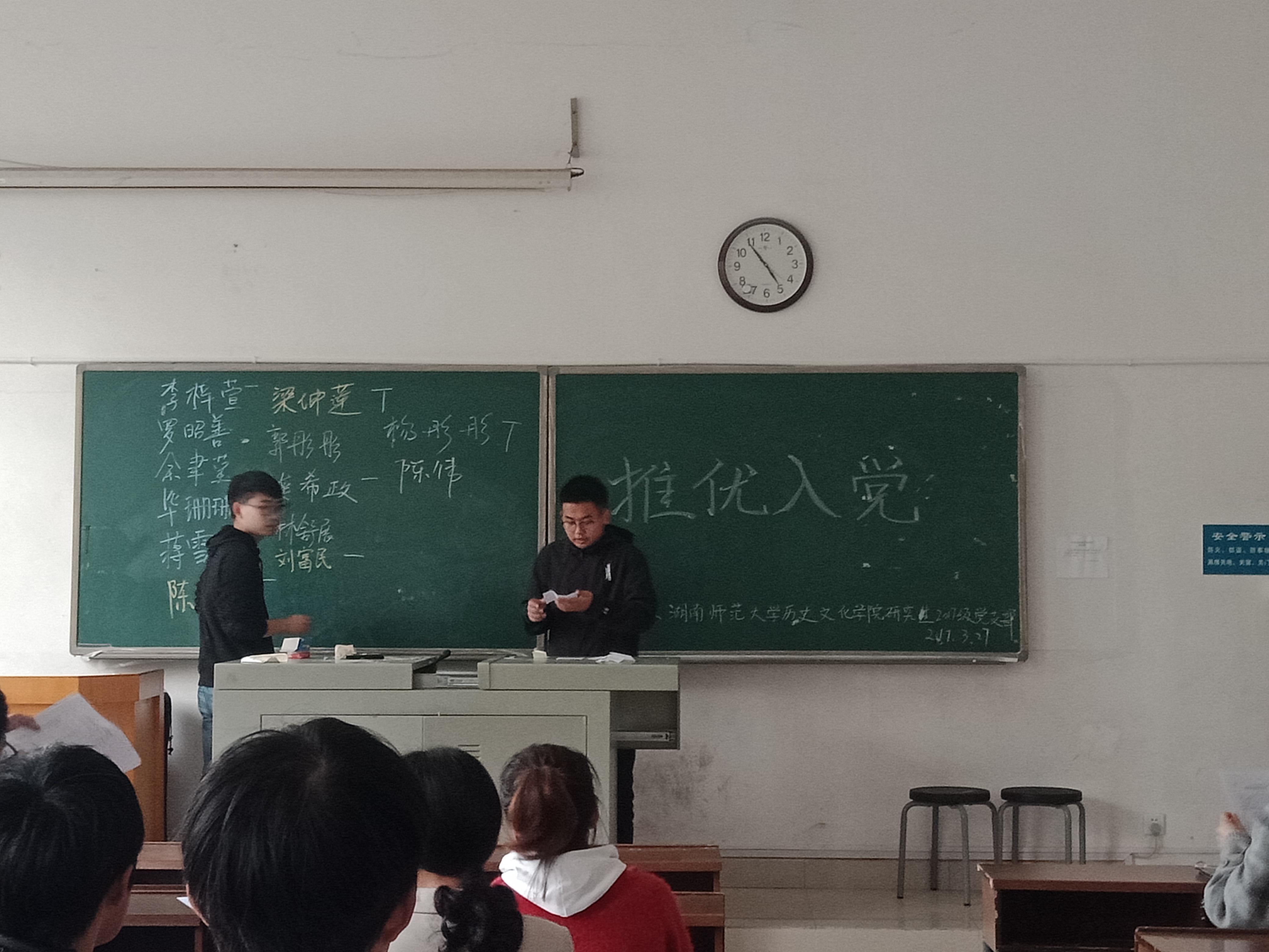 (通讯员 尹妍 勾娜)3月27日下午,研究生2017级党支部在公司411教室召开支部推优入党会议。会议由支部书记尹妍同志主持,支部全体党员以及入党积极分子参加会议。