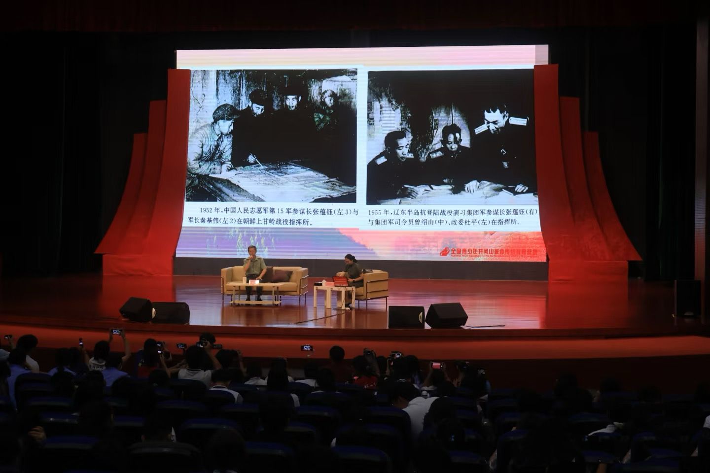 (图为实践团成员听“革命后代话初心・讲家风”讲座)