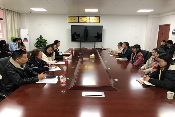 湖师大二附中党委支部书记余柏青老师就二附中实习环境做简单介绍,并肯定实习队的付出和实习成果。会议结束后,全体师生在仁爱楼前合影留念。