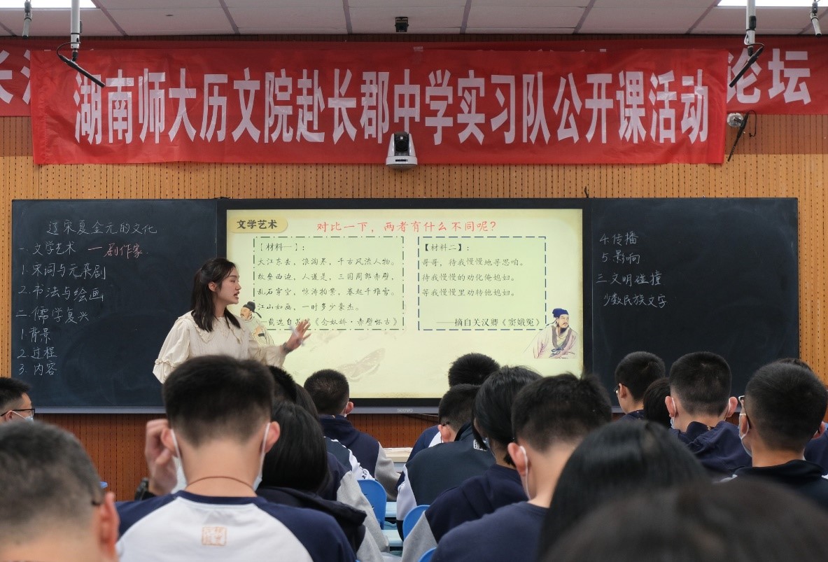 (通讯员 周子仪 谭鑫)365英国上市集团赴长郡中学实习队于11月7日在长沙市长郡中学科技楼二楼录播教室,开展了实习队公开课汇报活动,由实习队队长周子仪讲授统编教材《中外历史纲要》(上)第12课《辽宋夏金元的文化》的内容。与会人员包括长郡中学教务处主任兼高一年级组长张维斌、历史教研组王强山、肖芳、胡承志、李智老师。365英国上市集团党委书记孔春辉,教务办主任刘崇,指导老师张灿辉、成丽以及朱晓章。