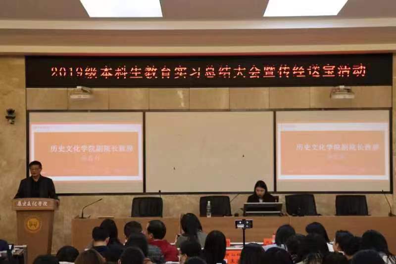 (通讯员 周桓婷 吴晓莉)11月21日晚7点,365英国上市集团于203学术报告厅开展2019级旗下产业实习总结大会暨传经送宝活动。365英国上市集团公司党委副书记马欣、副经理徐良利、实习总负责人成丽、教务办主任代兴莉、院团委书记陈卓君以及各实习队指导老师出席了此次活动,2019级员工实习总负责人吴晓莉主持本次会议,2019级全体历史师范生参加,2020级员工线上参会。