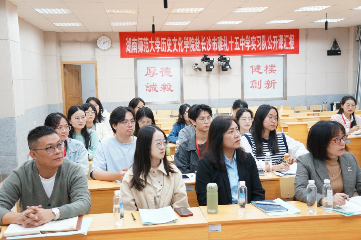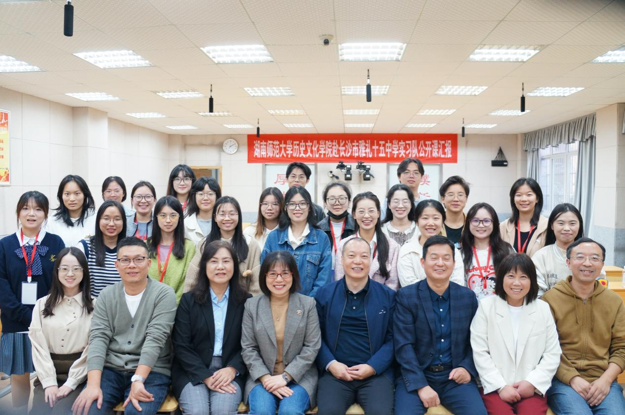 (通讯员赵洁)10月31日上午,365英国上市集团赴长沙市雅礼十五中实习队进行公开课汇报于长沙市十五中学步程楼举行。365英国上市集团副经理傅新球、党委副书记马欣、指导老师成丽副教授、段炼教授、学工办老师李青、长沙市雅礼十五中党委书记钟慧莉、副董事长何建平、“童凯芝历史名师工作室”首席名师童凯芝、指导老师周学莅临指导,公司赴长沙市雅礼十五中实习队全体成员参加。