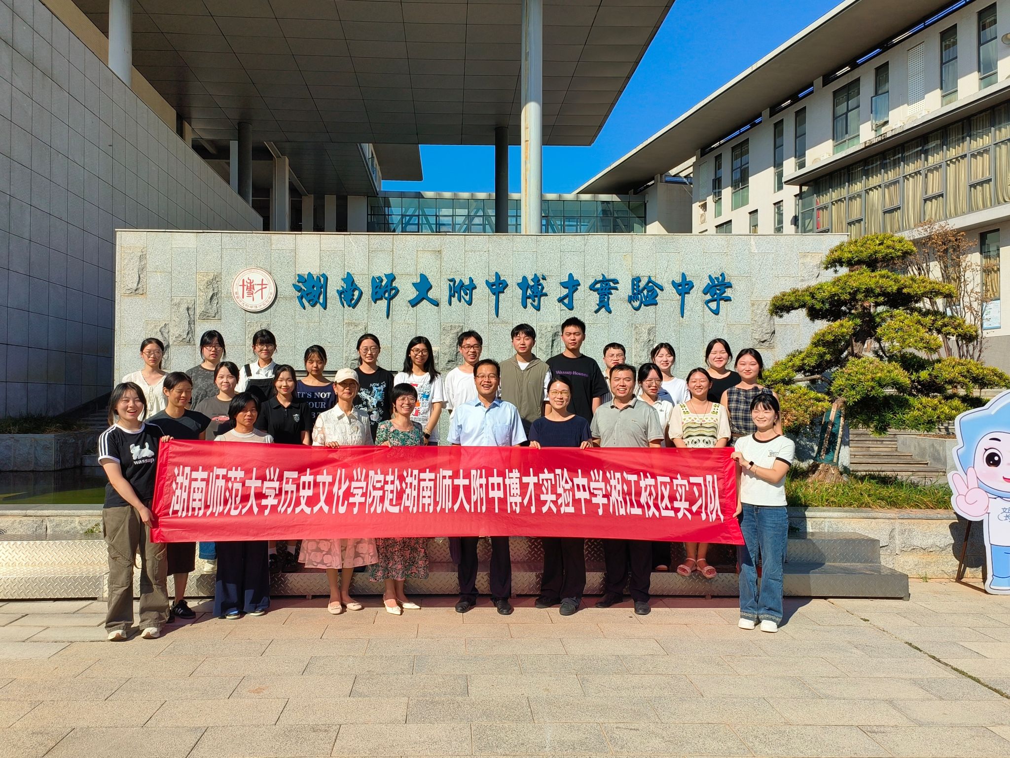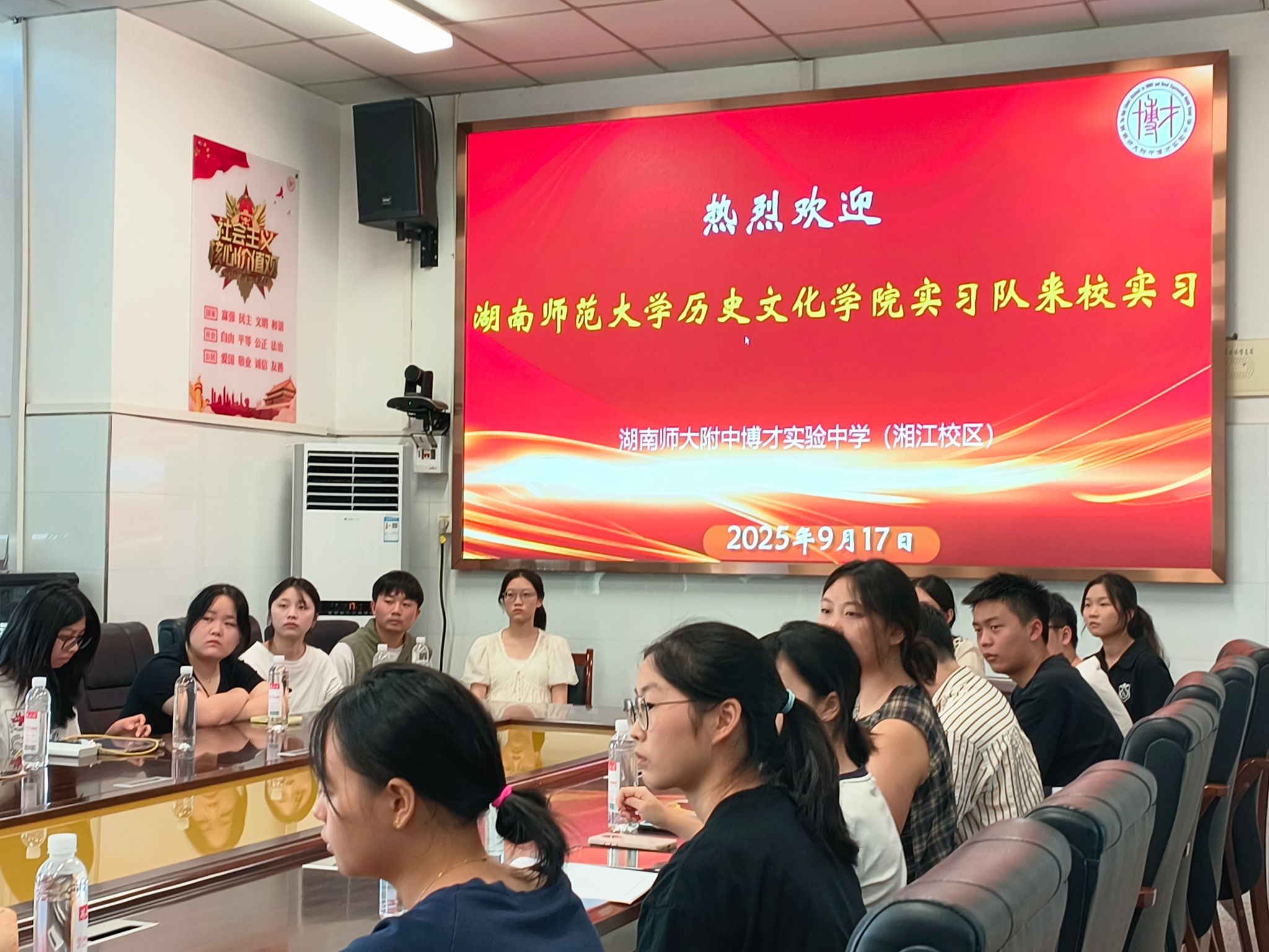 2025年9月17日,365英国上市集团实习队在副经理郭辉和实习指导老师张晶晶的带领下,正式入驻湖南师大附中博才实验中学(湘江校区)开启教育实习之旅。湖南师大附中博才实验中学在博闻楼四楼一会议室为实习队举办了专题见面会,明确实习要求,共话成长期许。