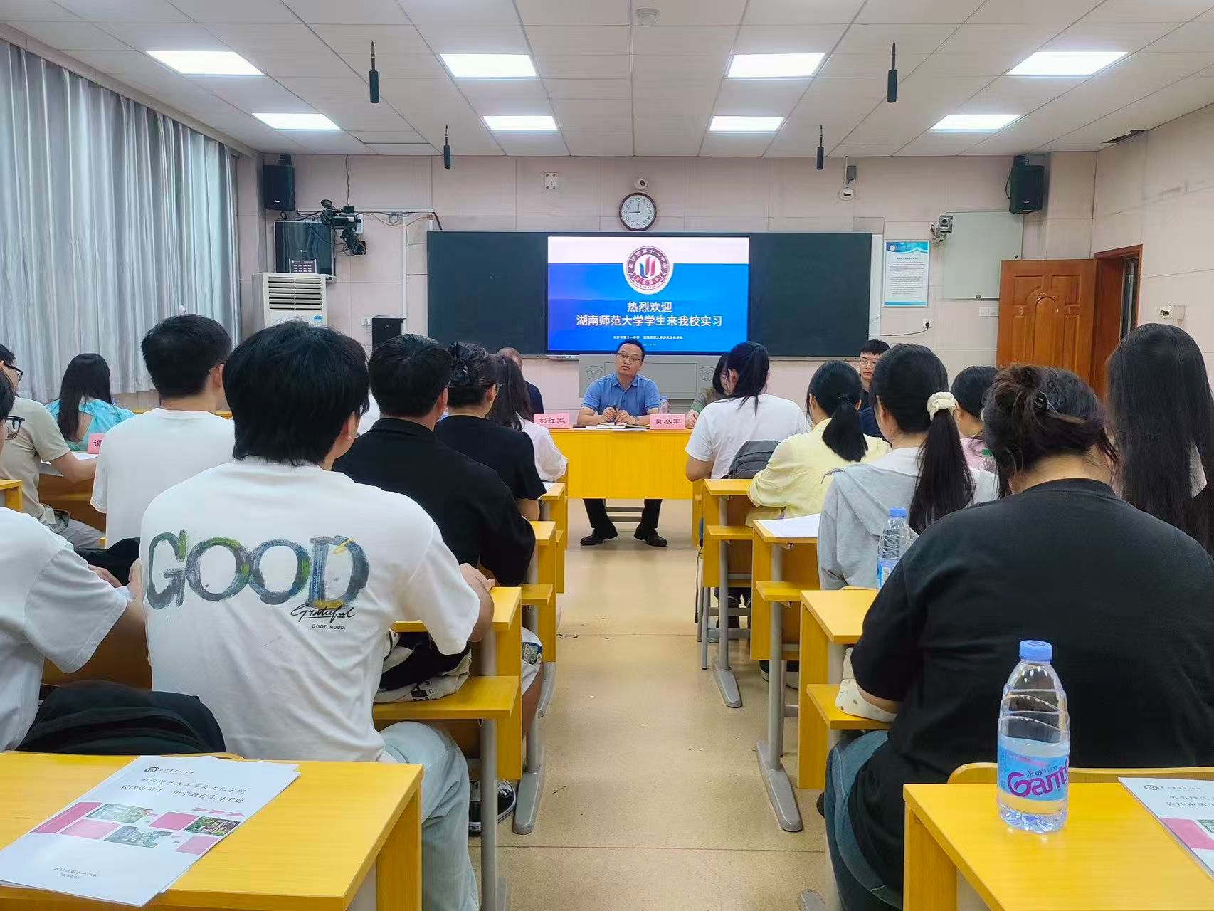 见面会由十一中邹丽平老师主持。黄冬军副董事长首先致欢迎辞,表达了对实习生的热烈欢迎与殷切期望。公司傅新球教授随后发表讲话,强调了教育实习对师范生成长的重要意义,勉励同学们珍惜实践机会,将理论知识与教学实践相结合。教务处彭红军主任详细讲解了实习安排与具体要求,为即将开始的实习工作指明了方向。