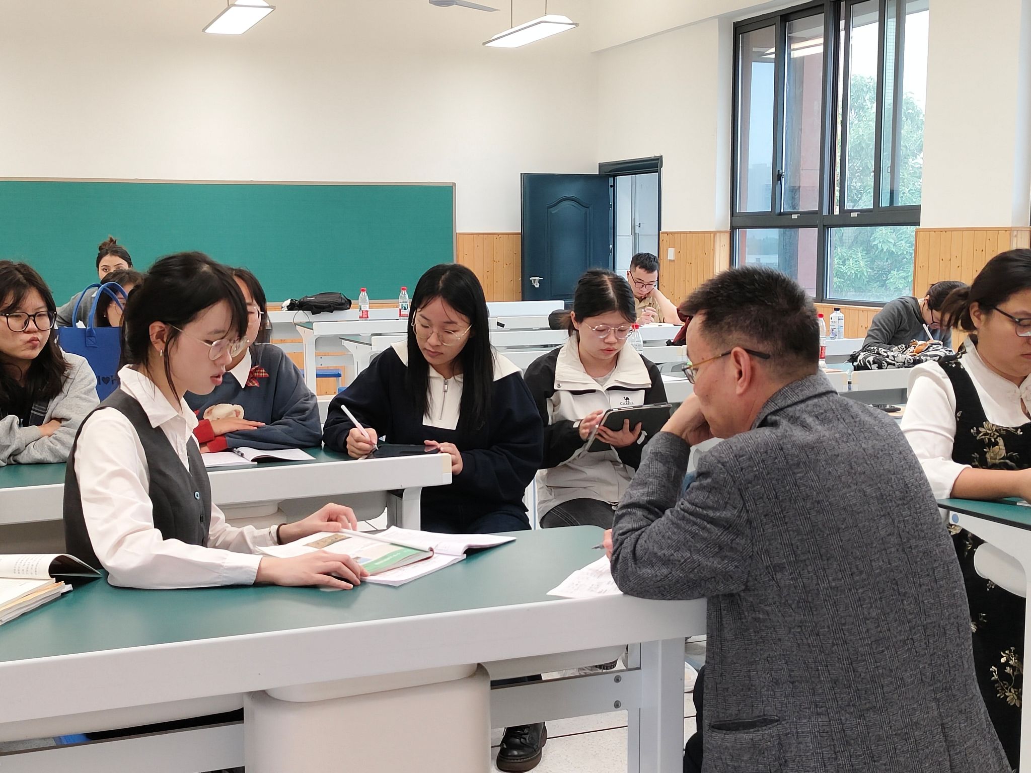 会议结束后,长沙实验雨花中学相关职能处室负责老师为实习队全体成员进行了岗前培训,重点介绍了公司作息与请假制度、教学常规与班主任职责、食堂用餐指南及后勤保障制度。教研室负责老师给同学们讲解了实习方案,并安排实习队队员与各位指导老师进行了交流沟通。