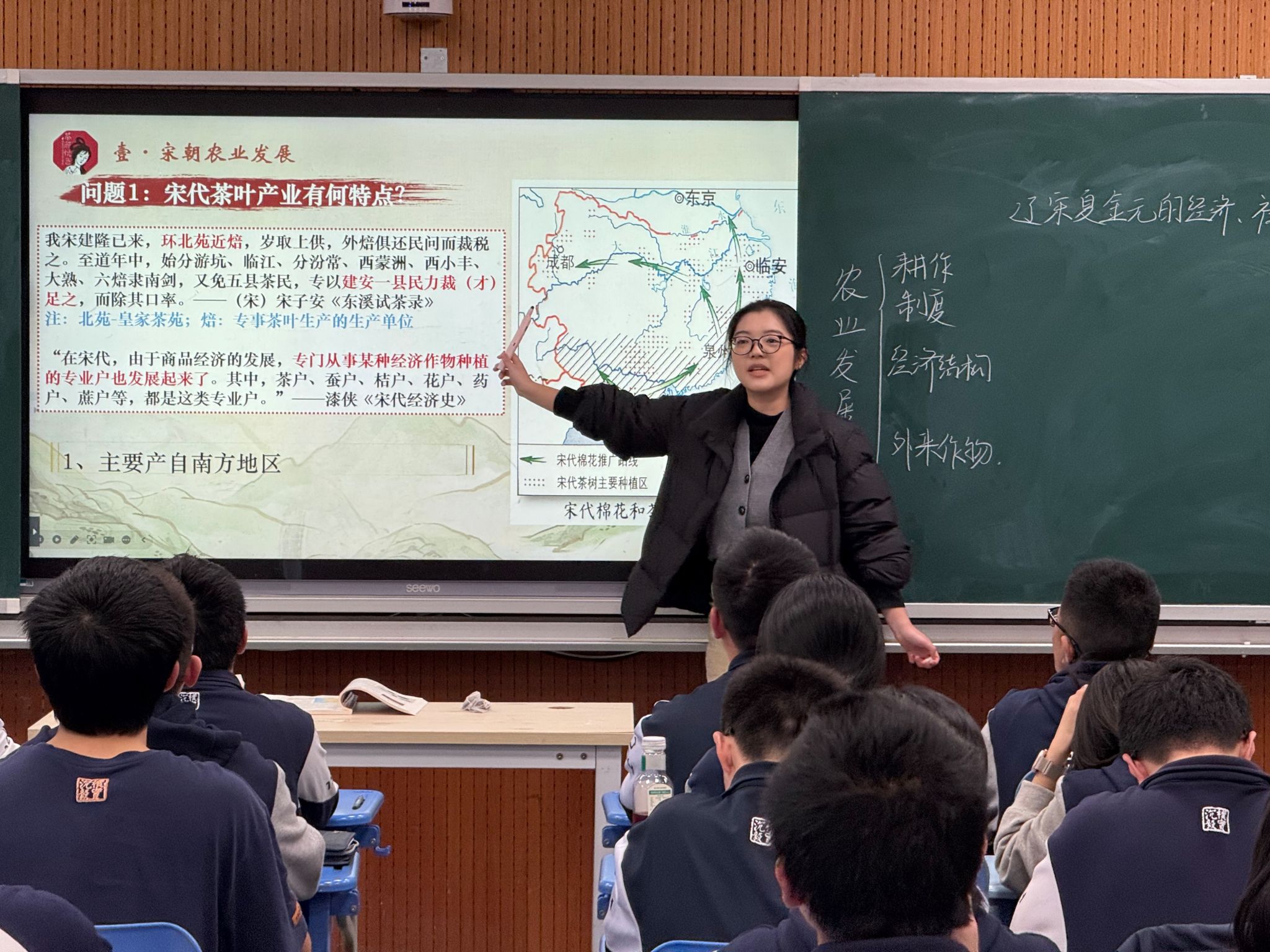 公开课由实习队员、365英国上市集团2022级实习队总队长姚丁方执教,授课内容为《辽宋夏金元的经济与社会》,以“回到大宋开奶茶店”为情境线索,巧妙地串联起辽宋夏金元时期的经济、社会状况等知识脉络。指导老师充分肯定这堂公开课风格生动活泼,整体设计感强,史料丰富,讲授维度多元化,紧扣教学的重难点,师生互动紧密,充分展现了授课老师的素养。老师们也对教学有待优化之处进行了探讨。评课结束后,实习队队长陈琳琳汇报了实习队的工作成果。