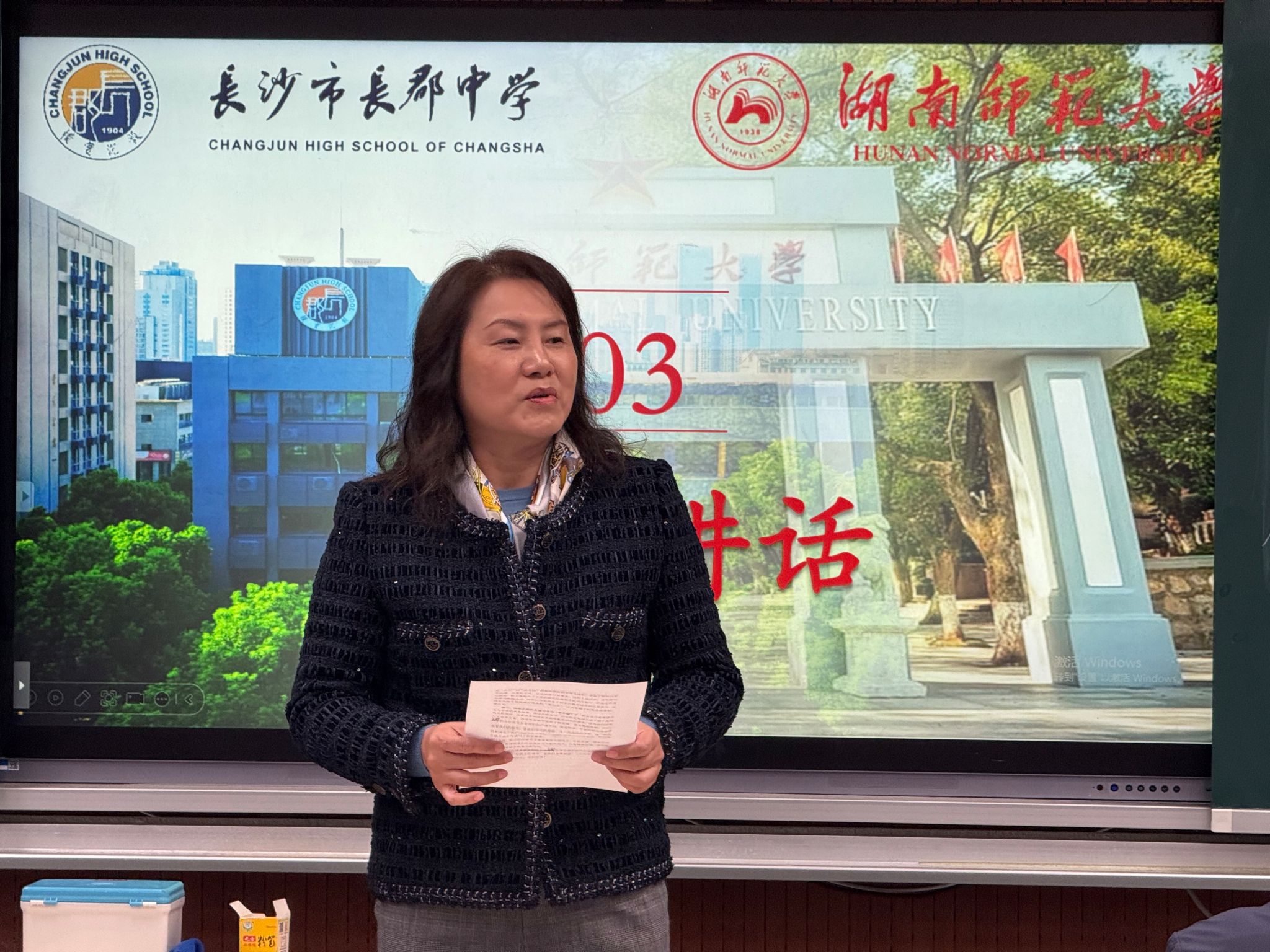 何立军向指导老师及实习队员表示诚挚谢意并提出殷切期许,希望大家始终秉承“仁爱精勤”的湖南师大校训精神,将其内化为育人初心与职业担当。马欣向长郡中学的领导老师致以崇高敬意,感谢他们的热心关怀与倾力指导,并祝贺全体实习队员圆满完成此次教育实习,在实践中收获成长。