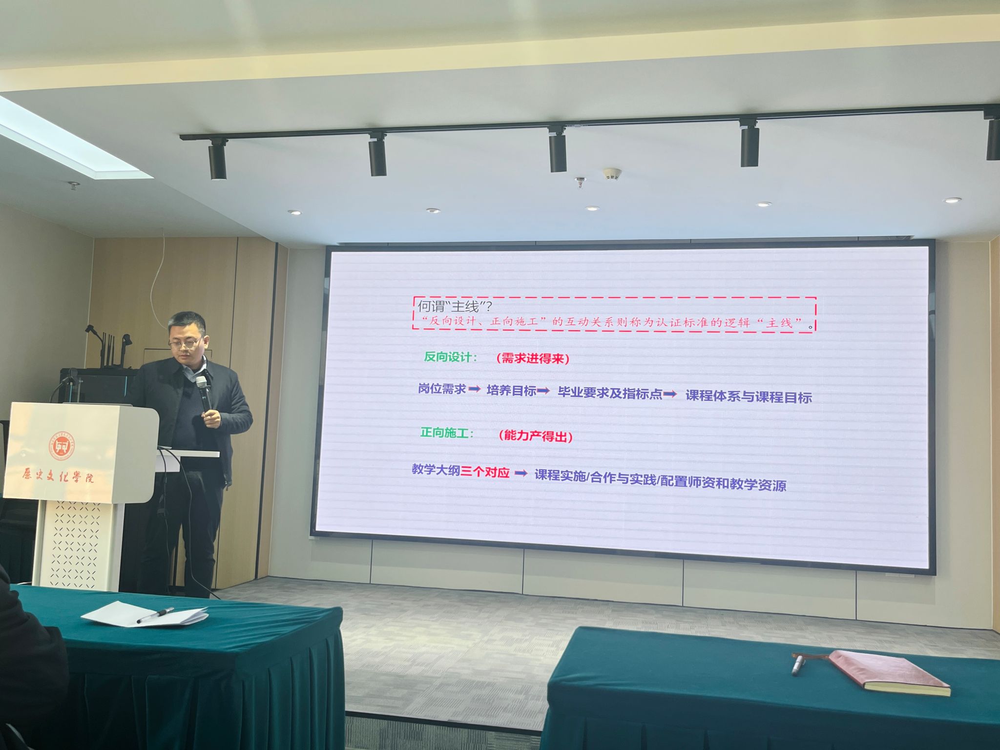 会上,历史学专业主任银品围绕师范三级认证标准展开系统培训,重点解读“员工中心、产出导向、持续改进”的OBE核心理念,分析了2025版人才培养方案与2023版方案的异同之处与进阶要求。同时,结合教学实践,对课程设置、课堂教学、考核评价等各环节的规范化要求进行详细说明,强调需以认证标准为引领,提升人才培养质量。