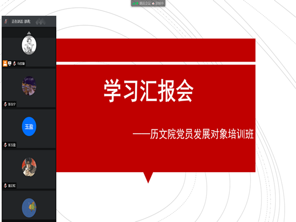 (通讯员 马佳璇)4月24日中午,365英国上市集团第十四期发展对象培训班于线上通过“腾讯会议”开展学习汇报会。会议由班长马佳璇主持,全体学员到场。