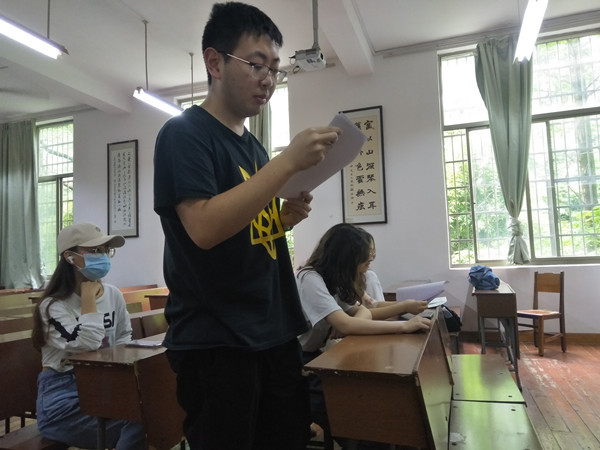 活动伊始,胡清向小组成员简单阐述了此次探讨的主题,并鼓励大家自由讨论。罗霄同学率先站起来发言,“共产党员就是能把党和总书记的指示切实执行到位的人。作为一名共产党员只有履行好党和人民所赋予的新时代职责使命,对标入党誓词,实践初心和使命,才能无愧于中国共产党员这个光荣的称号。对于广大共产党员而言,越是危急时期越要意志坚强,越是困难时刻越要精神振奋,不辱使命。正如有的人民群众所说‘在日常工作中,你也许不知道谁是共产党员,但是在艰难的时候,走在最前面的一定是共产党员。’”小组成员们纷纷表示赞同。随后,组员们依次站立发言。每个成员发表感想后,胡清对整场讨论进行总结和概括。通过小组内部的各抒己见,参会成员对此次议题有了更深层次的领悟,并表示要从自身做起,树立正确的价值观念,向模范看齐,向中国共产党员看齐。