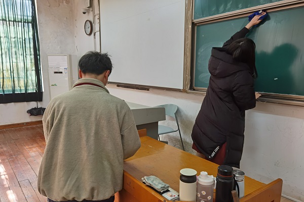活动伊始,小组成员于教室集合,并且每位成员提前准备好垃圾袋、扫帚等卫生工具。同时,大家根据教室卫生状况,分配好了任务。随后,小组成员积极配合,团结协作,不嫌脏、不嫌累,很好地诠释了集体的意义。活动进行到最后,所有人员共同验收劳动成果。李昊对本次活动进行总结,他认为此次义务劳动对于加强党性修养,树立起“全心全意为人民服务”的观念具有重要意义。张浔翊亦表示,此次义务劳动以亲身体验的方式给积极分子上了很好一课,对于当代老员工奉献与服务意识的养成提供了助力,有助于深入理解党的性质。