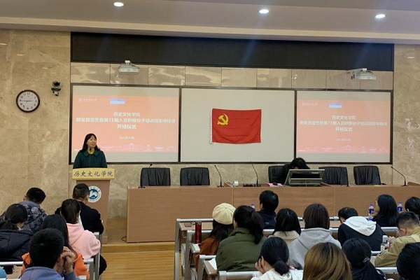 新党员代表2019级历史基地班唐萃仪、学员代表2020级历史教育班黄楚依同学进行了发言。