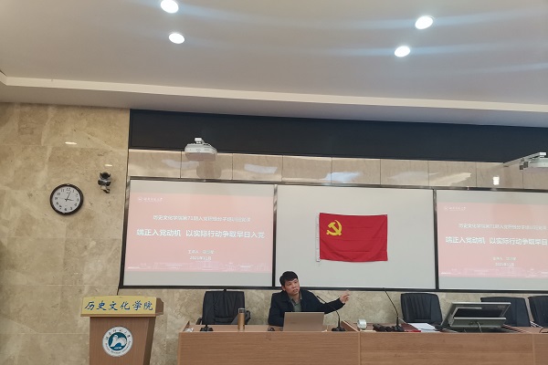 贺慧星从入党动机的含义、加入党组织的流程、对学员的期望等三个方面,深入浅出地进行讲授。贺书记指出,端正入党动机是争取入党的首要问题,只有为了献身共产主义事业、更好地为人民服务而要求入党,才是唯一正确的入党动机。贺慧星详细介绍了加入党组织的流程,并解答了学员们对于流程的疑惑。同时贺慧星勉励学员们要自觉接受党组织的培养、教育和考察,认真学习马克思列宁主义、毛泽东思想、邓小平理论、“三个代表”重要思想、科学发展观和习近平新时代中国特色社会主义思想,不断提高政治思想觉悟,坚定理想信念,争取早日成为一名合格党员。
