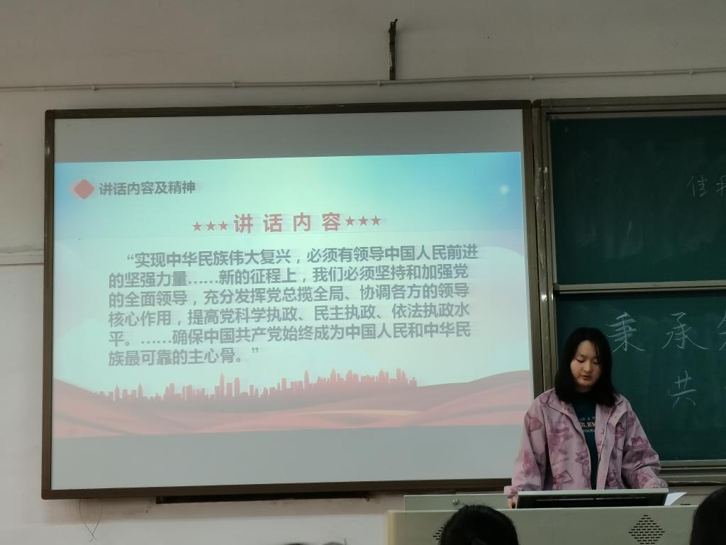 会议伊始,王可儿简要介绍了此次活动的主题和目的,随后围绕“习近平总书记在纪念辛亥革命110周年大会上的讲话”、“学习习近平总书记重要讲话精神”、“发扬辛亥革命先驱伟大精神,继续奋勇前进”等要点对此次学习主题进一步阐述。随后,王可儿组织全体成员共同观看新闻联播中有关习近平总书记在纪念辛亥革命110周年大会上发表重要讲话的视频,并带领大家梳理了讲话的主要内容。然后就如何深入学习习近平总书记重要讲话精神这一问题,小组成员各抒己见,积极交流。最后,王可儿同学对此次学习活动进行总结,并希望大家以史为鉴、开创未来,展现出我们青年一代的热血与担当,为实现中华民族伟大复兴的中国梦而不懈奋斗!
