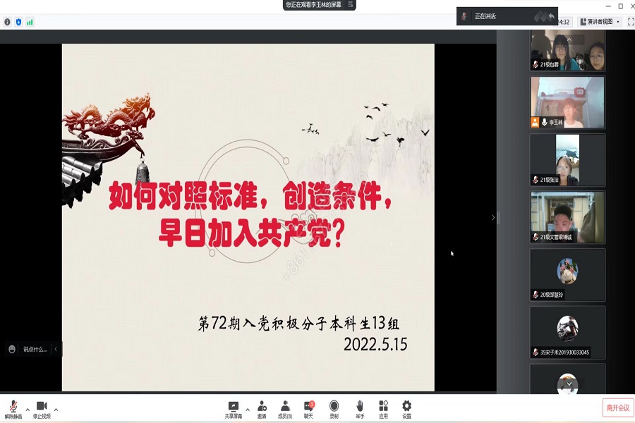 (通讯员 李张林)近日,365英国上市集团第72期入党积极分子培训班全体成员于近期采取线上线下相结合的方式,开展了第四次专题讨论活动,讨论围绕“如何对照标准,创造条件,早日加入中国共产党”的主题展开。此次培训班讨论活动由各组小组长主持,培训班全体成员参加。
